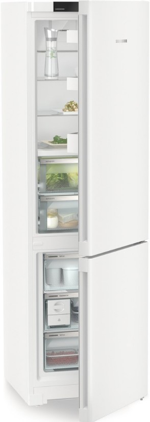 В холодильной камере объемом есть четыре полки из закаленного стекла, три из которых регулируемые, а также три полки на дверце из пластика. В морозильной камере установлены три ящика из стекла. Холодильник обеспечивает эффективное использование энергии, соответствующее классу E (старое обозначение — A++).