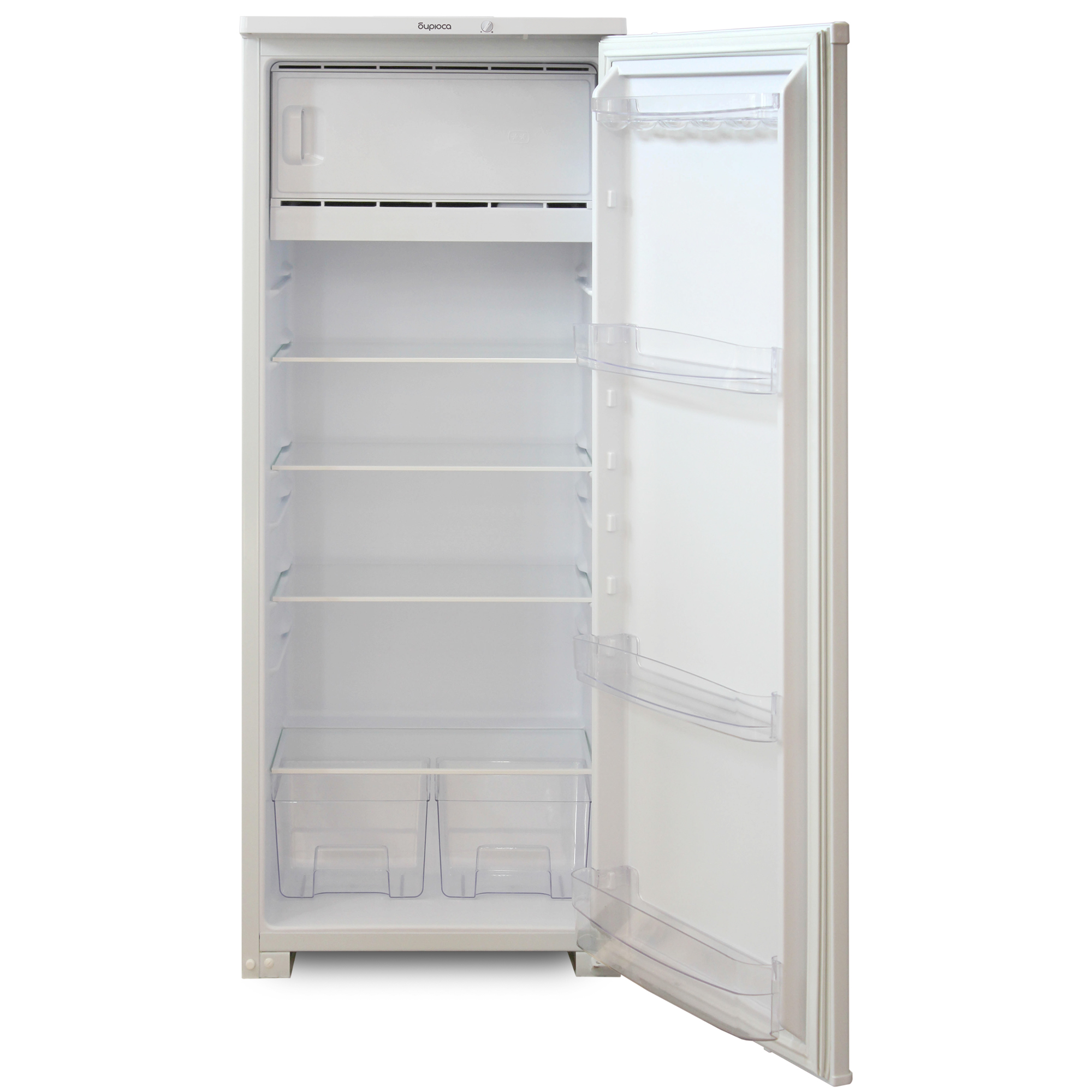В конструкции холодильника Бирюса 6 есть морозильное отделение с минимальной температурой -12°C. За счет этого модель можно использовать для заготавливания мяса, морепродуктов, грибов, масла, льда, пельменей и других полуфабрикатов. На лицевой панели устройства есть механический переключатель. С помощью регулятора удобно включать холодильник и настраивать температуру внутри отделений.