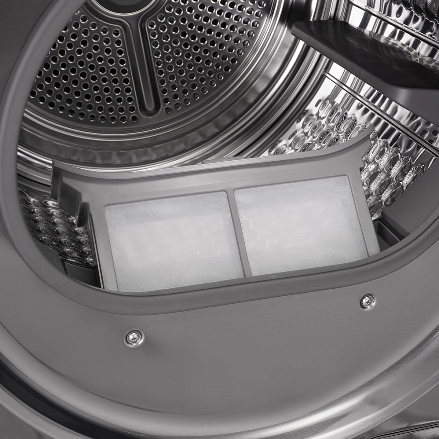 Модель оснащена тепловым насосом, который обеспечивает бережную и эффективную сушку белья. Максимальная загрузка составляет 10 кг. Благодаря классу энергопотребления A+++, машина экономит электроэнергию.
