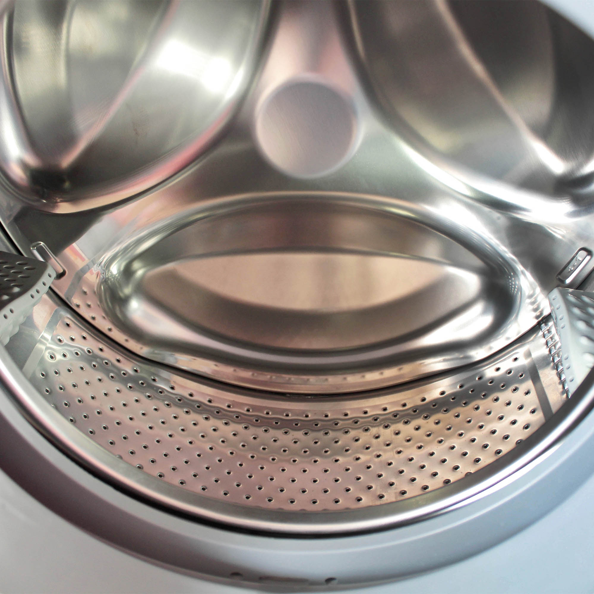 Белье внутри барабана перемещается равномерно за счет автобаланса. Благодаря этому технологическому решению удается избежать шума и вибрации при стирке. Интенсивность отжима в зависимости от ситуации можно подбирать в пределах 1000 об/мин. Все эти характеристики указывают на практичность стиральной машины и удобство в повседневном использовании.