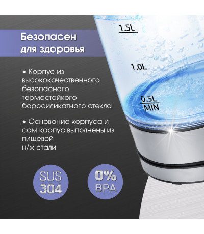 • Корпус из высококачественного безопасного термостойкого боросиликатного стекла (0% BPA)