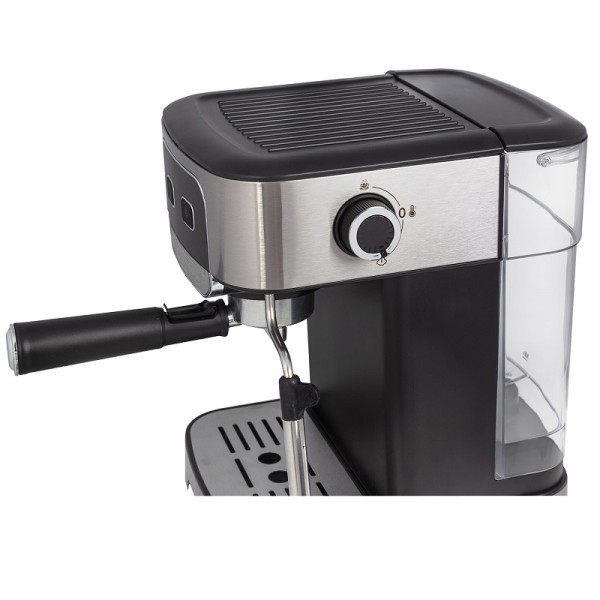 Тип кофеварки рожковая, Мощность 1200 Вт, Максимальное давление 15 бар, Тип кофе: молотый, Резервуар для воды 1.8 л, Поддон для капель съемный, Автоматическое приготовление 1 или 2 чашки, Кнопки с подсветкой есть, Защита от перегрева и избытка давления есть, Материал корпуса сталь и пластик, Габаритные размеры 30х25х32.5 см, Вес (нетто/брутто) 2,9 кг/3,6 кг, Длина сетевого шнура 1.13 м.