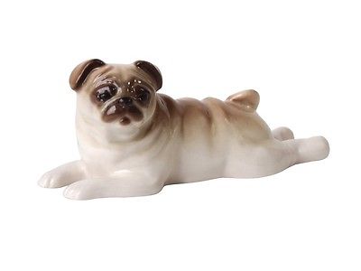 Скульптура Мопс лежащий, фарфор