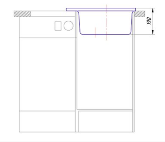Диаметр отверстия для водопроводного крана составляет 35 мм.