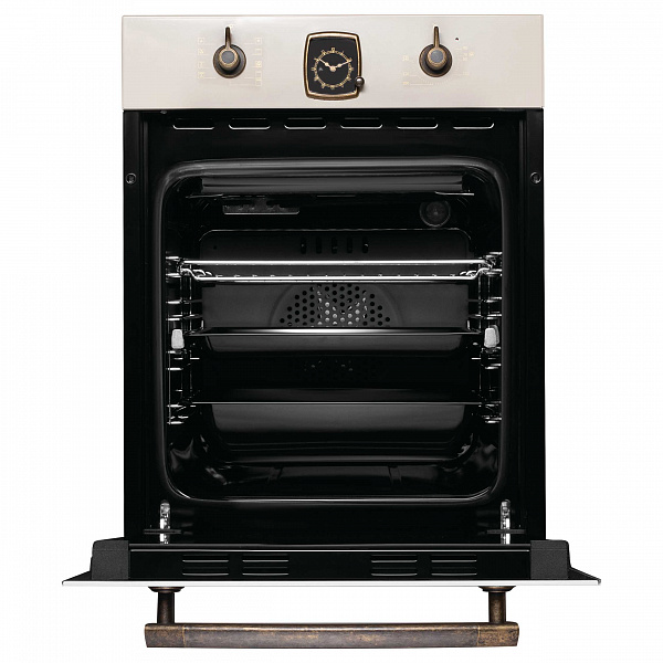 Внешний вид часов, расположенных на панели управления выполнен в классическом, традиционном стиле. Хотя каждый элемент часов от стрелок до цифр выглядит, как и много лет назад, но внутри скрывается высокая функциональность современного электронного таймера, полностью управляющего процессом работы духового шкафа - от включения до автоматического отключения по истечению заданного времени.