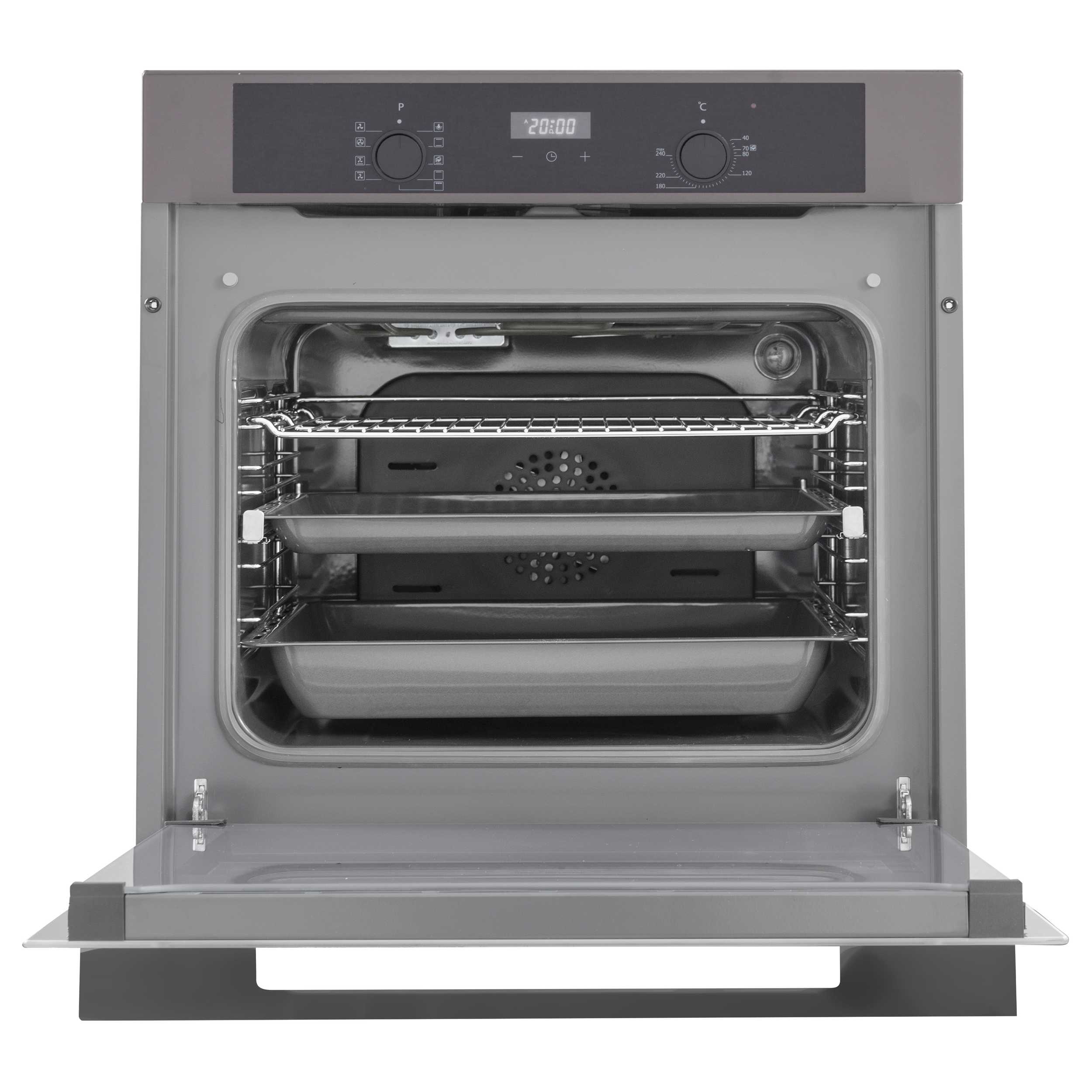Телескопические направляющие надежно удерживают противень на одном из нескольких уровней.