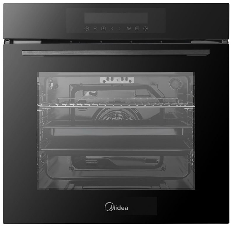 Электрический духовой шкаф Midea MO98270CGW оснащен телескопическими направляющими для комфортного использования противня. За счет специальной конструкции не нужно поддерживать поднос при выдвижении. Чтобы регулировать режим работы, на корпусе есть панель с сенсорными кнопками. Цифровой дисплей предназначен для отображения показателей работы и времени. Откидная дверца с тройным стеклом не нагревается во время функционирования духового шкафа.