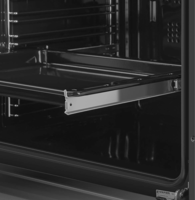 Благодаря телескопическим направляющим противни и решётки надёжно фиксируются, что облегчает загрузку и выгрузку посуды.