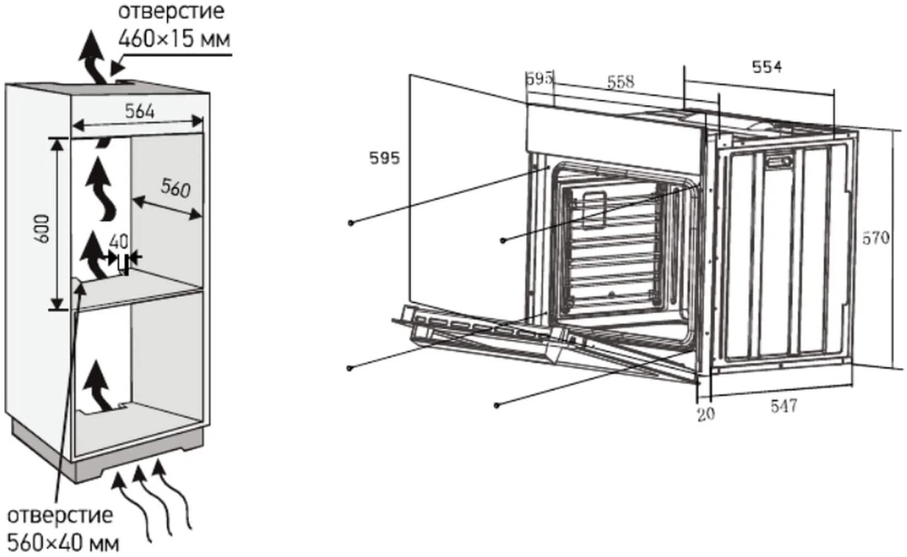 Размеры ниши для встраивания (ВхШхГ), см