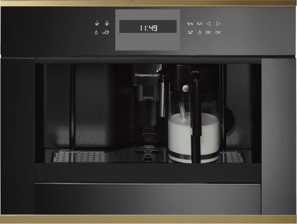 Встраиваемая кофемашина Kuppersbusch CKV 6550.0 S4 Gold оснащена удобной электронной многофункциональной панелью управления с дисплеем и сенсорными кнопками. Благодаря этому пользователь может с легкостью выбрать вид, объем, температуру и уровень крепости бодрящего напитка. С моделью можно использовать зерновой или молотый кофе. За счет функции самоочистки в начале и конце цикла приготовления поддерживается чистота каналов и внутренних поверхностей устройства.