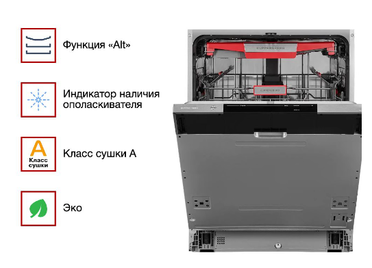 Устройство отличается экономичностью за один цикл оно потребляет всего 10 л и 0,94 кВт*ч. С помощью функции Alt можно выбрать определенную емкость, в которой находятся загрязненные предметы. Это минимизирует расходы ресурсов на их очищение. Также доступно регулирование подачи ополаскивателя.