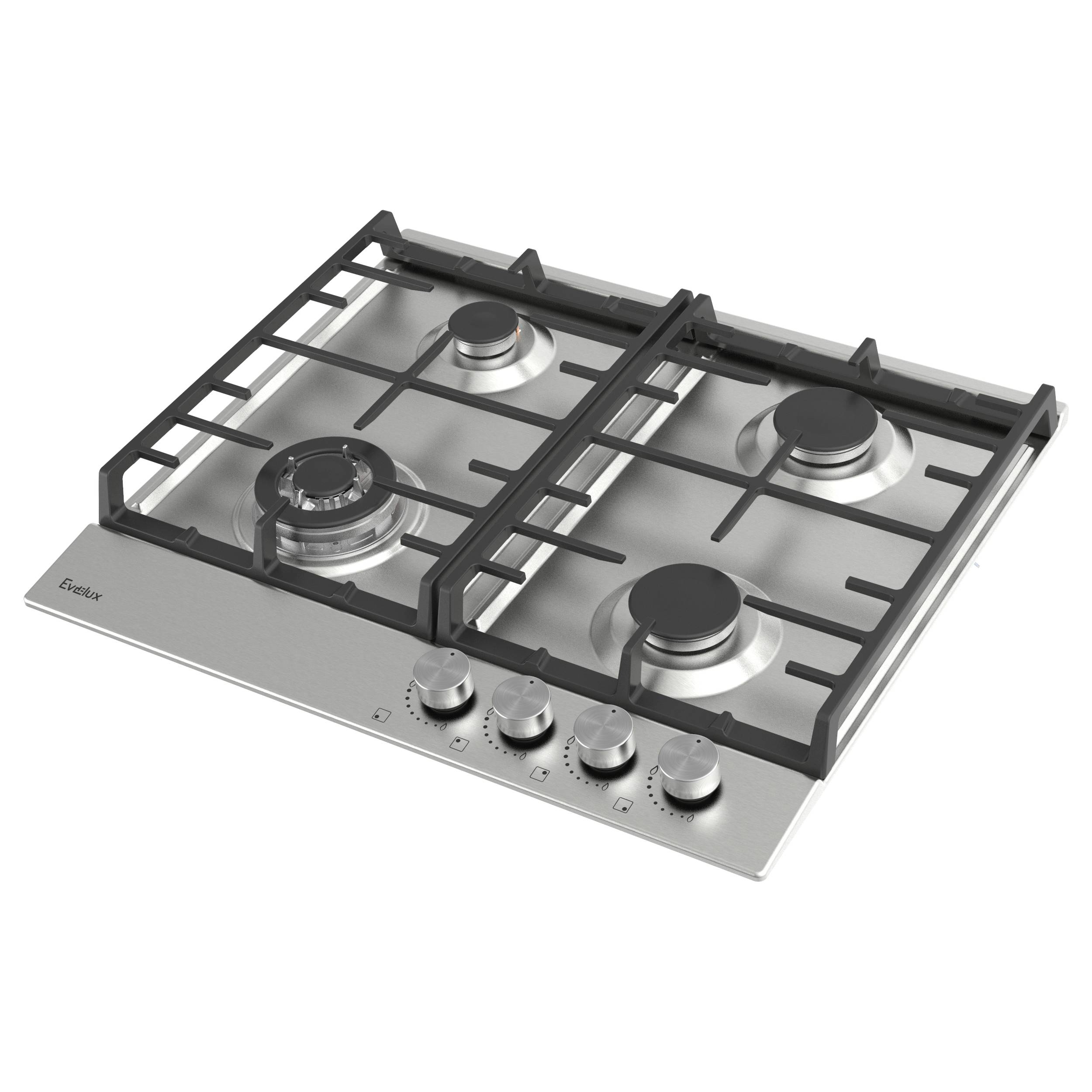 • Металлические поворотные регуляторыПоворотные регуляторы газовых варочных поверхностей Evelux выполнены из металла, что создает профессиональный стиль и препятствует их перегреву.