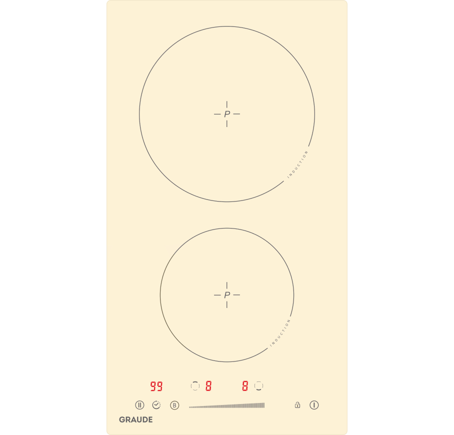 Данная модель имеет 2 конфорки. Варочная панель оборудована 9 ступенями нагрева. Главная ее особенность - возможность распознавания посуды. При помощи индикаторов остаточного тепла можно определить состояние конфорки после завершения приготовления блюда, насколько сильно нагрета та или иная зона. В прибор встроена функция автоматического отключения (по окончании приготовления пищи, устройство самостоятельно отключается в соответствии с данными, введенными в программируемы таймер). Для управления и отображения информации в устройство встроен сенсорный дисплей, который загорается при включении и позволяет программировать работу девайса легкими движениями.