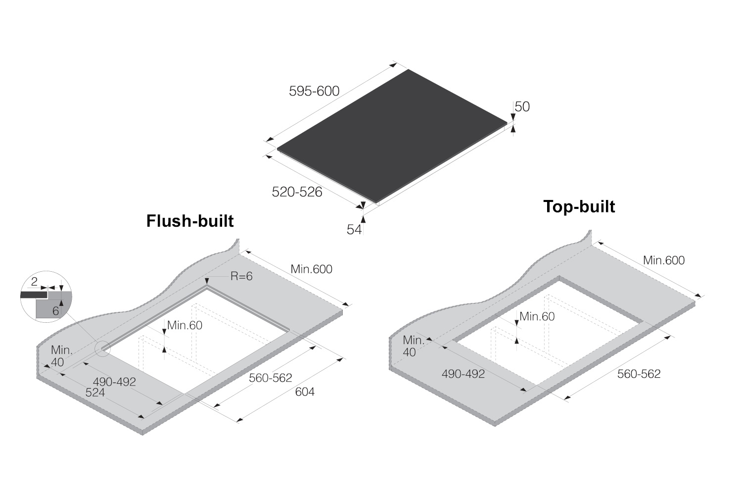 Размеры ниши для встраивания (ВхШхГ), см