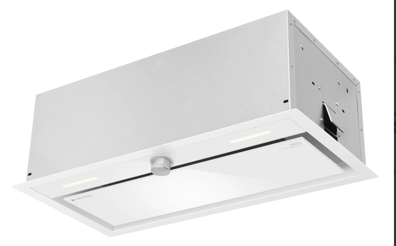 MEFERI INBOX60WH PUSH COMFORT PLUS — это мощная и стильная вытяжка с белой стеклянной панелью, которая станет украшением любой современной кухни. Созданная для обеспечения максимальной эффективности, она легко справляется с очисткой воздуха в помещениях площадью до 40 м².