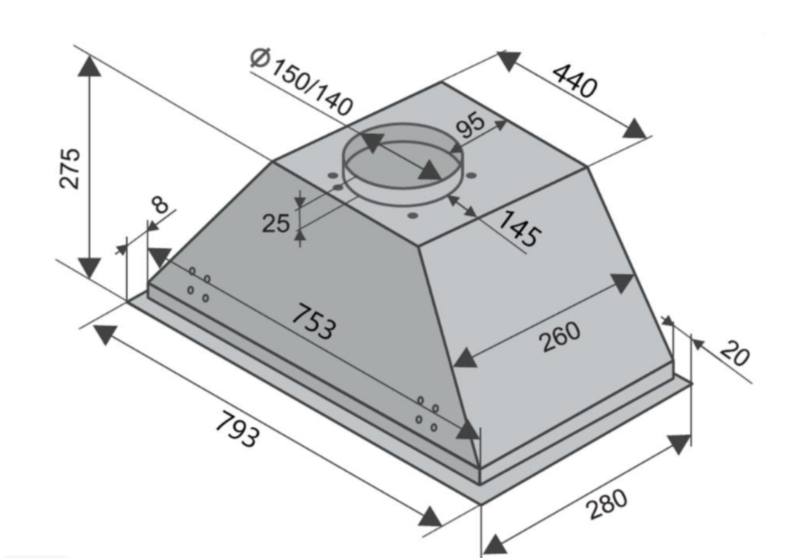 Корпус вытяжки выполнен из высококачественной лакированной стали.