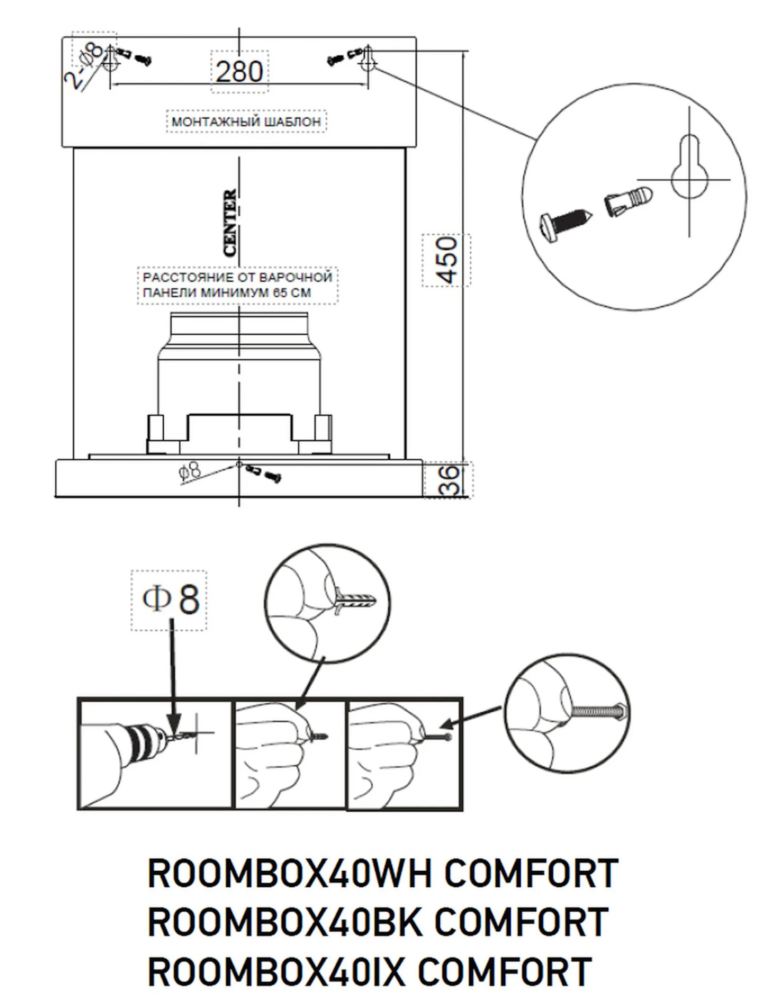 Вытяжка пристенная труба Meferi ROOMBOX40WH COMFORT