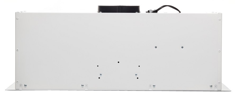- Фасад вытяжки полностью закрывает нижнюю полку - это позволяет монтировать вытяжку в кухонные шкафчики вместо нижней полки (дна).