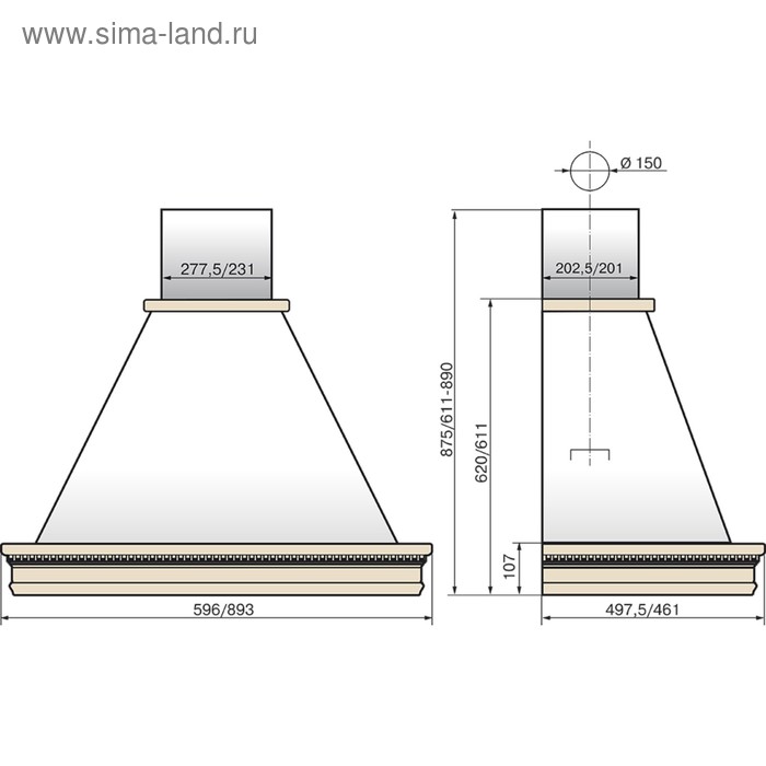 Вытяжка купольная ELIKOR Вилла Луизиана 60П-650-ПЗЛ бежевый/дуб бел+патина зол.